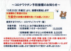またコロナワクチン定期接種の案内です。10月20日から開始しますが、